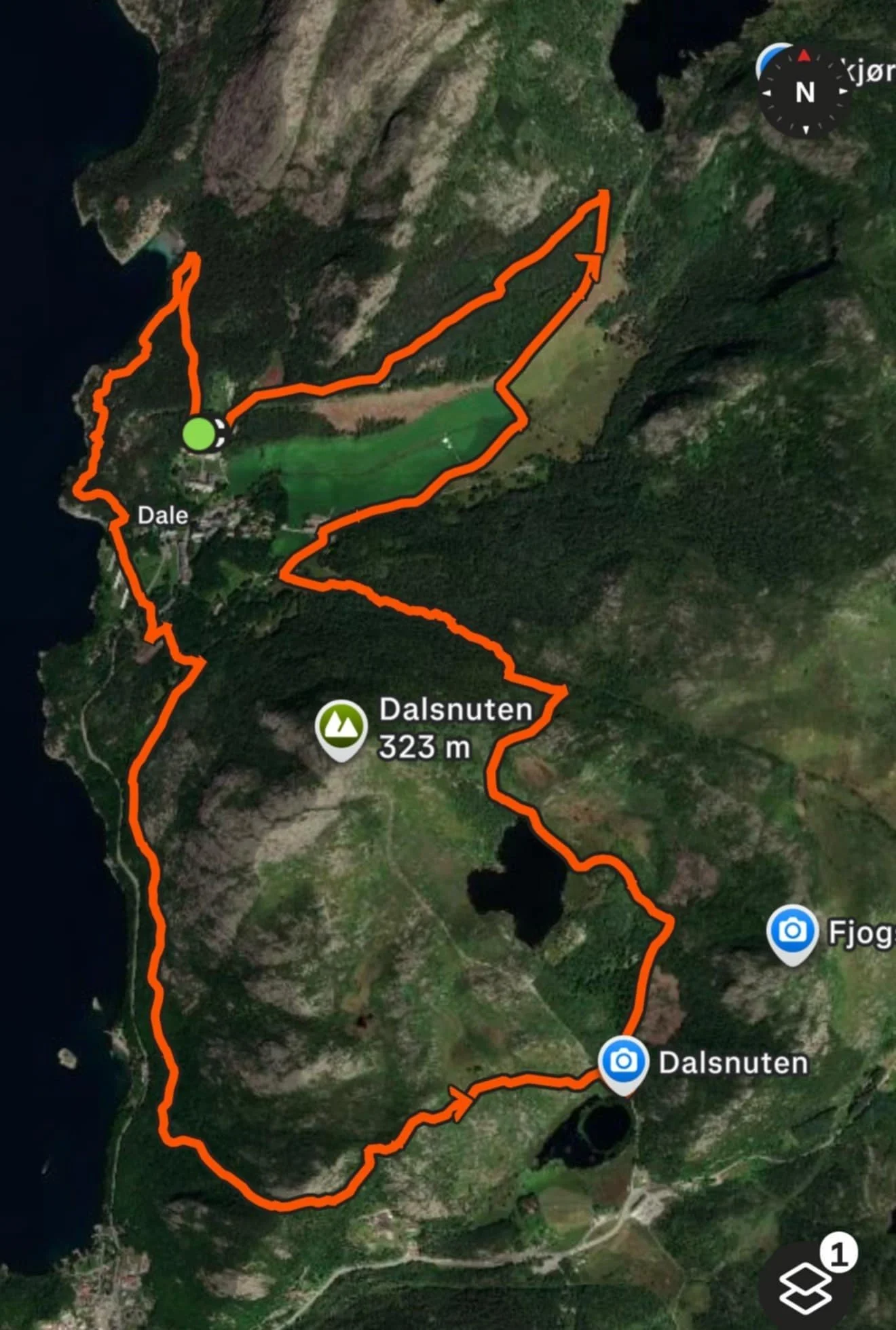 Start og mål på grusbanen på Dale, den kortere løypen er 6.4 km lang og har 307 høydemeter.